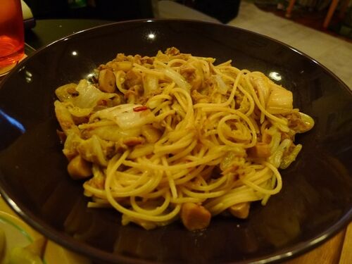 冬になると鍋が定番である、今回は鍋の残りもの白菜とキノコでパスタを作った。 ツナ缶を組み合わせて作ってみたが、反省点は和風の味付けの方が良かった! しかし、サーモンんのマリネは美味しく出来ました。以外に簡単だ これまた反省点は、玉ねぎのあく抜…