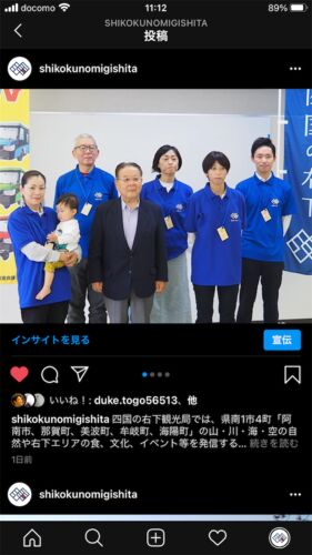 先日、日和佐に出かけたのはローカルアンバサの任命式でした。四国右下の各町から選任され、私は那賀町の担当です! 皆さんお若い方で私が最高齢でした。中央は理事長さんでだいぶ先輩だけどね! 昨日はTV徳島の夕方のニュースで私のインタビューが流れて驚…