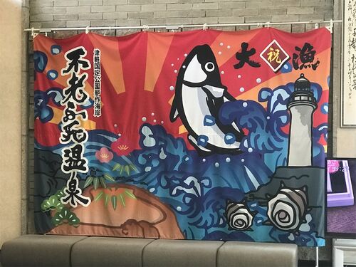 不老不死温泉♨️は日本海を見ながら鉄分の多いオレンジ色の湯は気持ちよかった。 この温泉♨️が始まって60年くらい経つらしい、近くの温泉は♨️店じまいしてるので、今はここだけらしい! 青池は本当に青かった、この青は藍の色に似てる。 魚も優雅に泳いでいた…